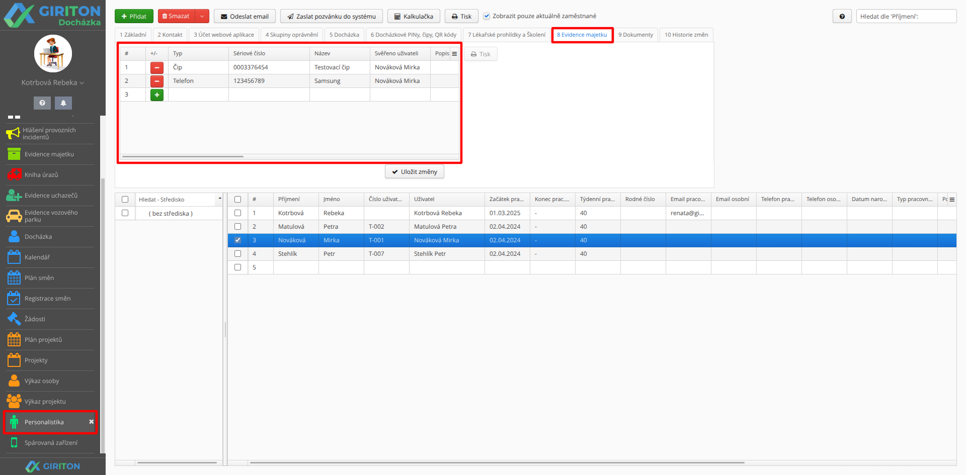 - Zobrazit záznamy v nové kartě v agendě "Personalistika" - ANO