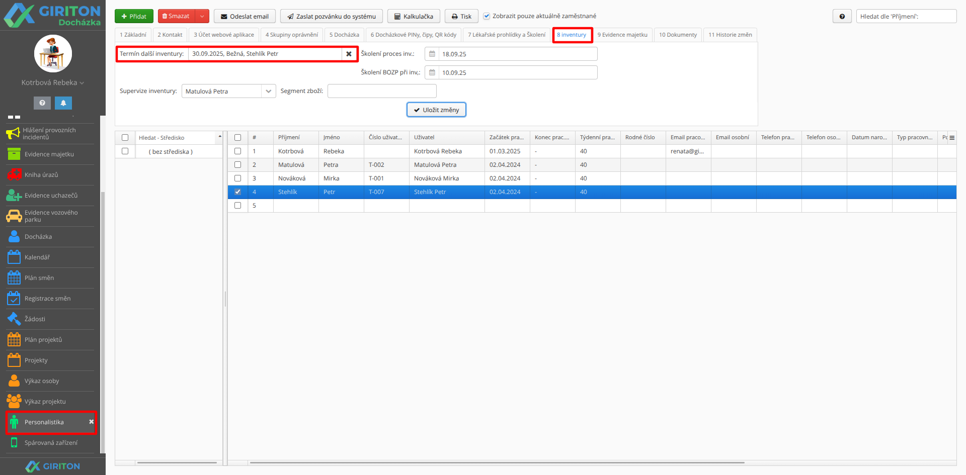 - Pokud máte vlevo v menu agendu Personalistika otevřenou, pak ji křížkem zavřete a znovu otevřete, aby se promítly provedené změny.